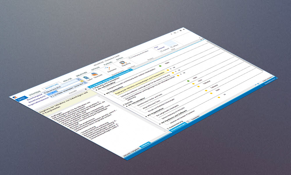 Als inhaltliche Steilvorlage des BSI stehen über 90 Bausteine und über 1300 formulierte Schutzmaßnahmen als fundiert beschriebene Empfehlungen bereit. Die Masse an Inhalten wird für eine praktikable Anwendung im eigenen Unternehmen aufbereitet und für die Durchführung von Bewertungen nutzbar gemacht.