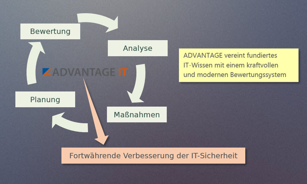 ADVANTAGE IT ist eine praxiserprobte, sofort nutzbare Softwarelösung für Ihre IT-Sicherheit.